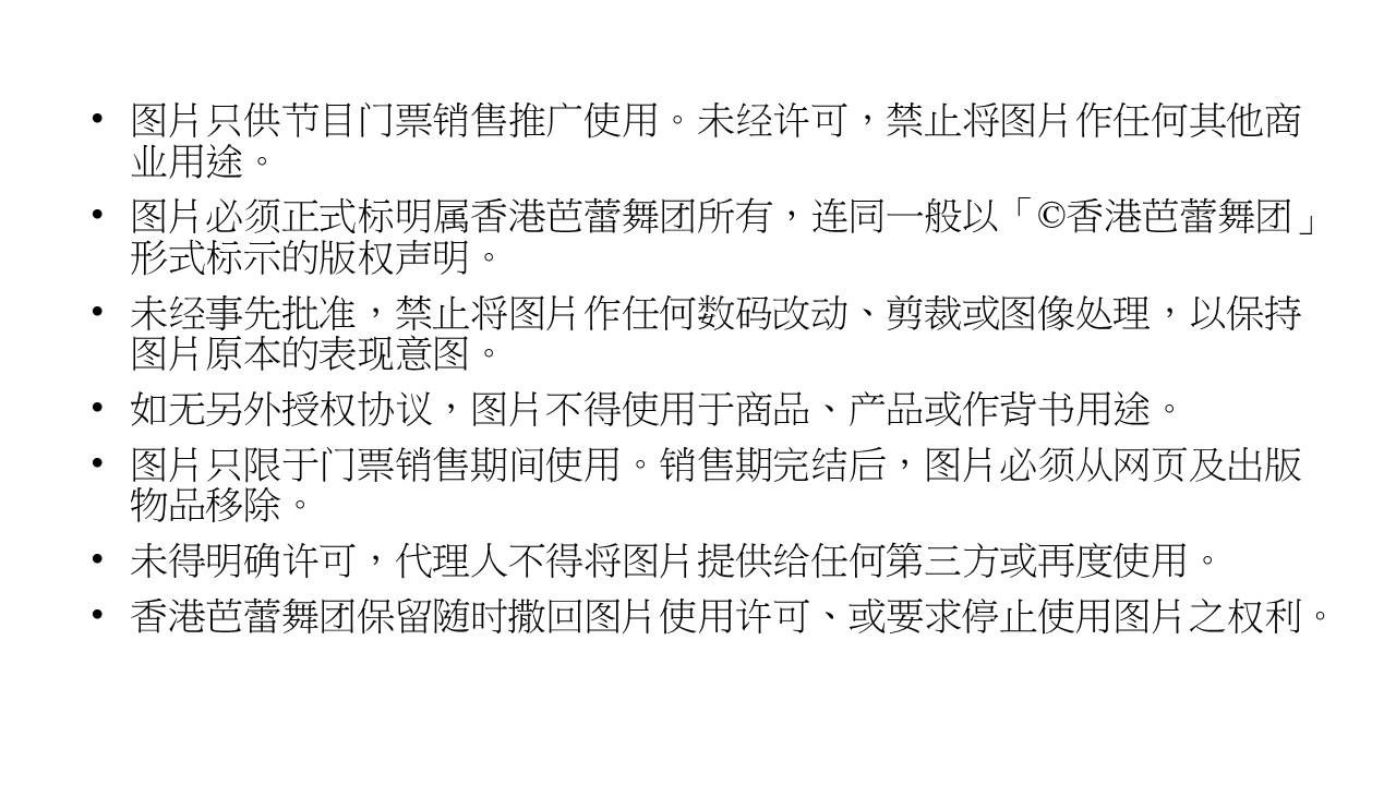 如需要使用节目内容及图片,可按下方图片下载,并请遵照香港芭蕾舞团指示。按此阅读指示。