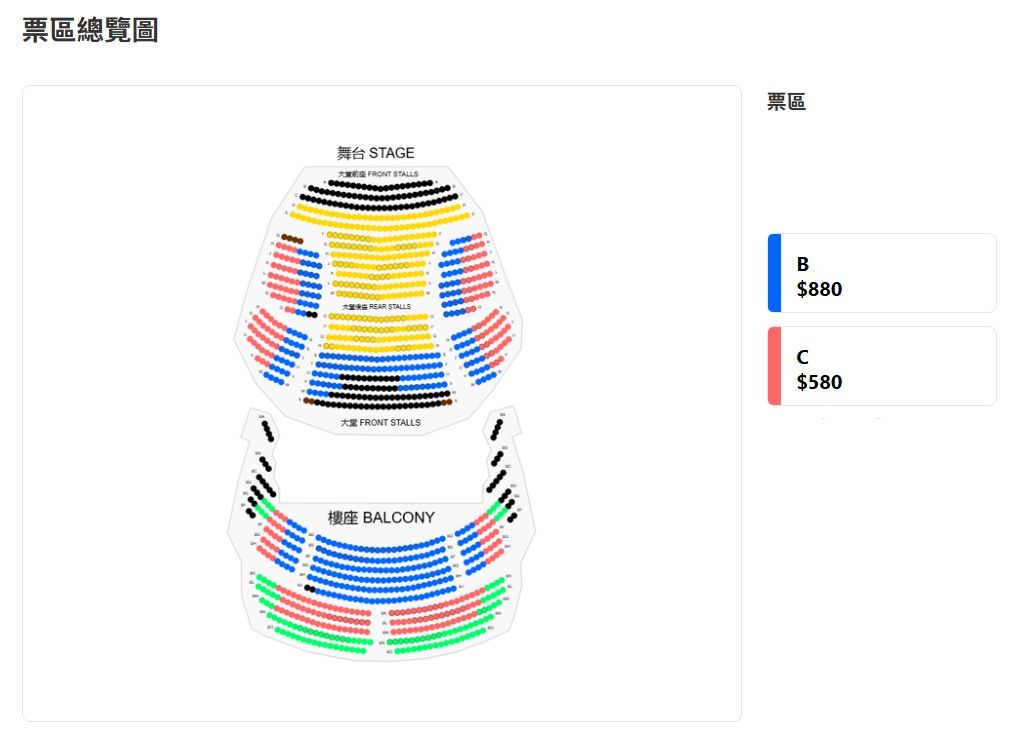 票价:港币$880 / $580